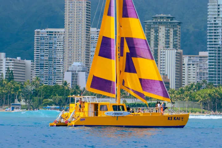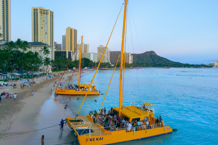 The Manu Kai crew invites you to join us on our nightly fun Waikiki Sunset Sail. Experience sailing, sightseeing, complimentary cocktails, the beautiful Hawaiian sunset, and, if you’re lucky, the rare green flash! It can get pretty wild out there, you just might get wet!